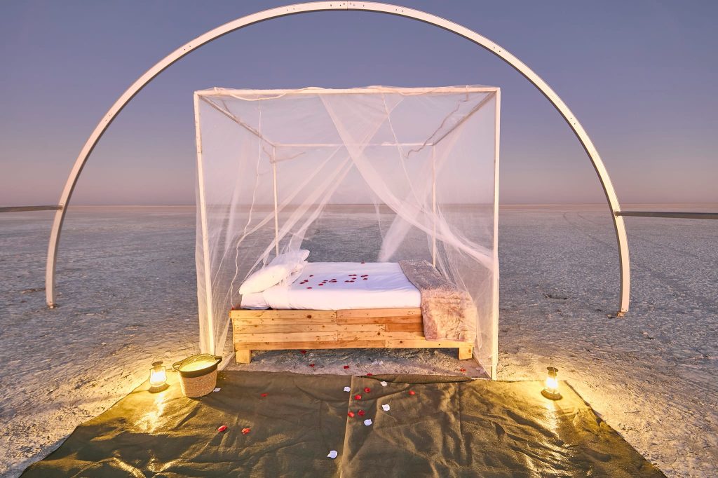 Surrounded by vast expanses of salt pans, the camp provides a rare opportunity to witness the stunning contrasts of the desert landscape, from the shimmering salt flats to the lush oasis of the Boteti River. Guests can embark on thrilling guided safaris to observe the diverse wildlife that call this region home, from majestic elephants to elusive leopards.