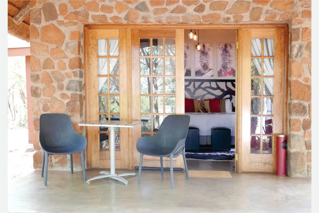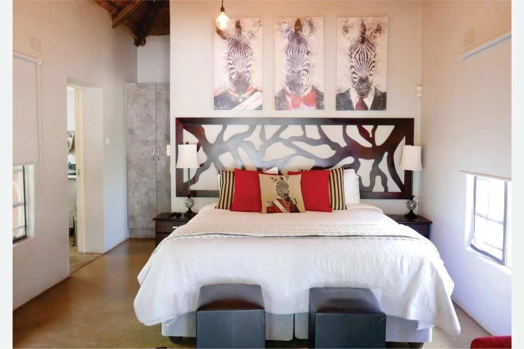 This unique thatched chalet, perfect for 2 guests, offers a barbecue spot surrounded by natural bush with a view of the Notwane Dam.